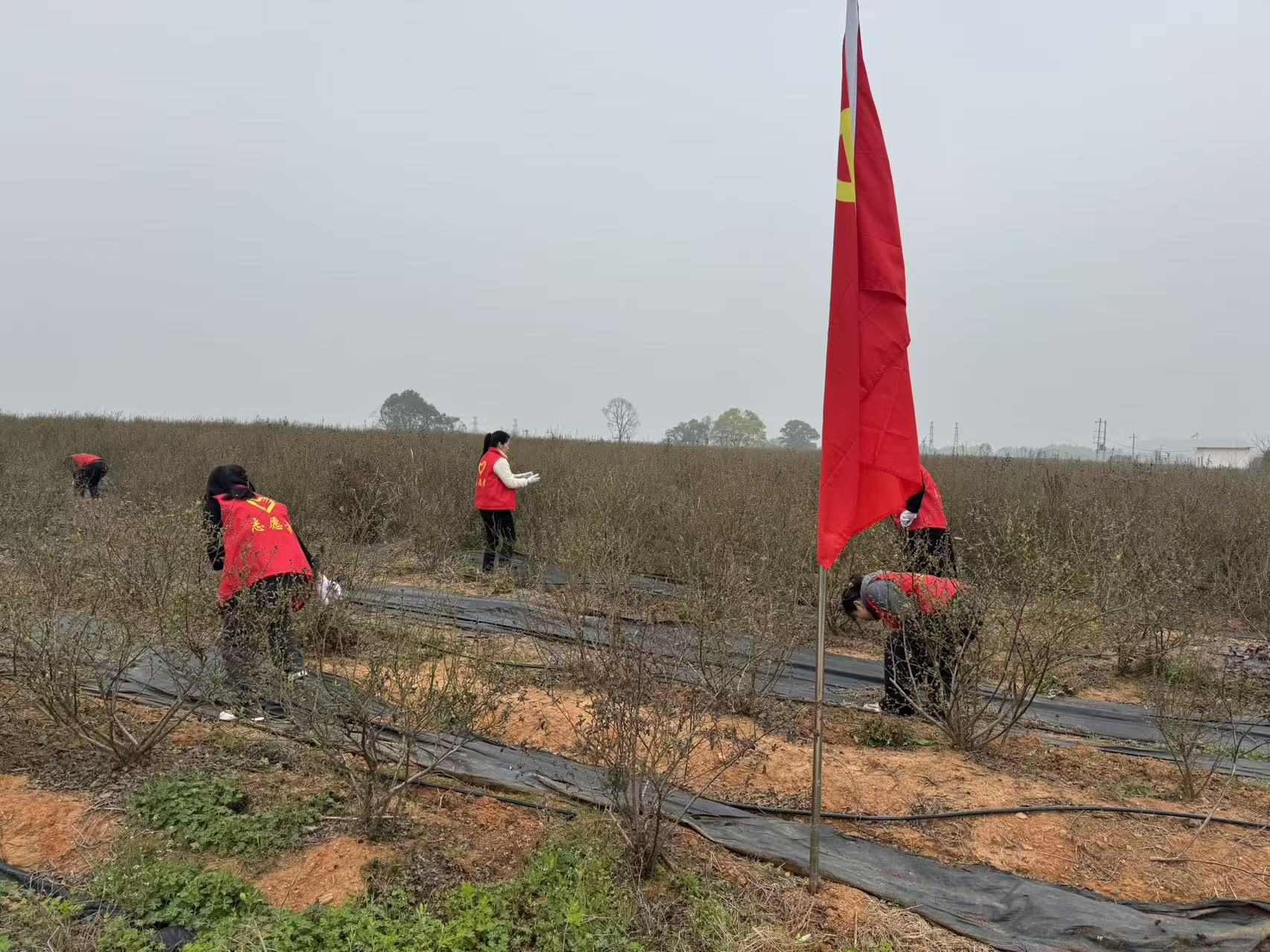 活动伊始,工作人员现场介绍了产业园蓝莓种植情况及养护操作要求。目前,东腾蓝莓产业园种植面积5000亩,蓝莓苗木繁育基地面积500亩,基地采取挂点责任片区、督查评比等方式,对蓝莓产前、产中、产后全过程进行管理。讲解结束后,党员们俯身投入除草作业,田间地头,党员们干劲十足,配合默契,拔草、清杂、归置,每一个环节都认真细致,鲜红的党徽在田间绿意中格外醒目,形成一道亮丽的风景线。经过一番忙碌,指定区域的杂草被清理干净,蓝莓苗生长环境得到有效改善。